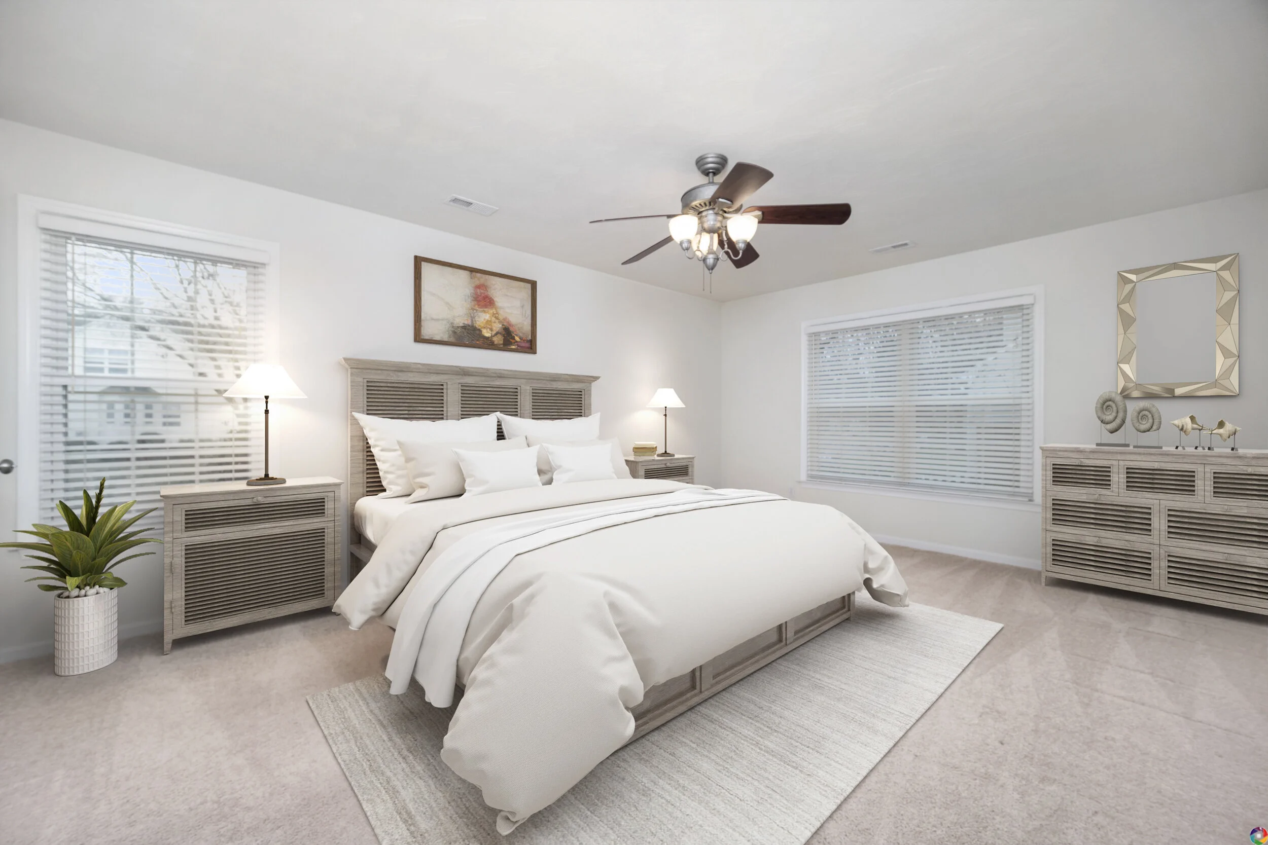 Furniture and decorations are digitally added to the photo of a room to provide the same welcoming feeling as physical staging.